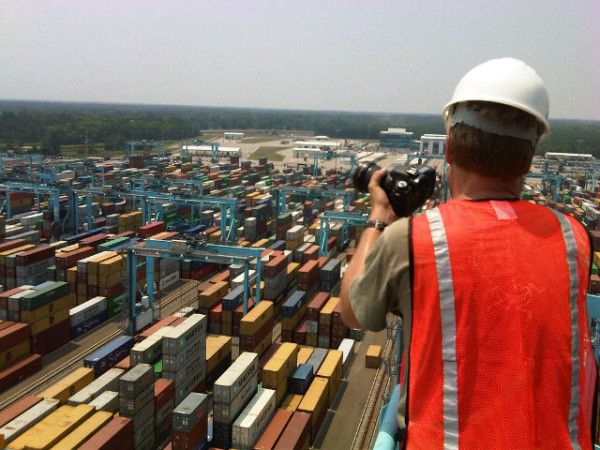 Setting up our time lapse camera at APM Terminals in Virginia #Cavotecfilm